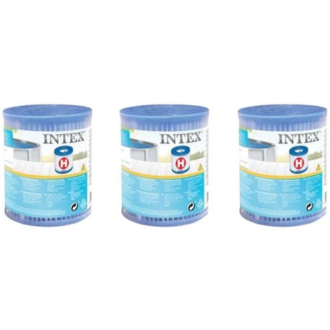 Cartouches de filtration H vendues en lot de 3, 6 ou 12.Les cartouches de filtration de type H sont compatibles avec l’épurateur à cartouche 1,25 m³/h de la marque Intex.Elles sont indispensables pour la filtration de votre piscine. Facilement nettoyage, nous vous conseillons de la nettoyer 2 fois par semaine et d’alterner l’utilisation de 2 cartouches pour prolonger leur durée de vie.Matière : fibre dacron
