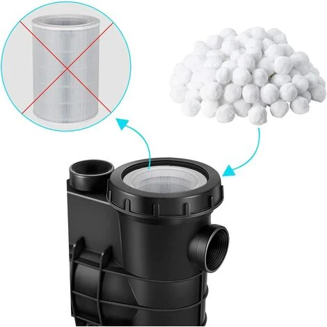 - Pratique: par rapport au sable, les billes filtrantes sont beaucoup plus faciles à ajouter ou à changer. Pour tous les systèmes de filtres à sable / verre existants pour piscines. Débit plus élevé, jusqu’à 45%. Les billes filtrantes légères (700 g) réduisent la pression de la pompe de filtration, prolongeant ainsi la durée de vie du système de filtration.