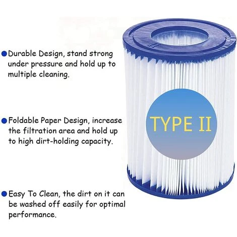 Filtre de piscine type 2 : convient pour les purificateurs à cartouche de type II pour Bestway 58094,58148,58117, SPA, remplacement pour filtre de nettoyage de piscine.