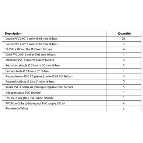 Kit complet de raccordement PVC Ø63 mm PN-16 pour piscine. – – – –