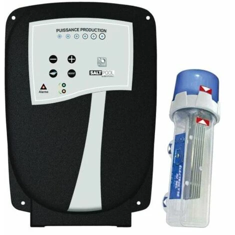 Électrolyseur au sel Bio-Pool Salt Pool 15, pour piscine jusqu’à 60 m3.Excellent rapport qualité/prixConçu et fabriqué en FranceInversion de polarité automatiqueProduction : 15 gr/hFonction « volet roulant »Garantie : 2 ans