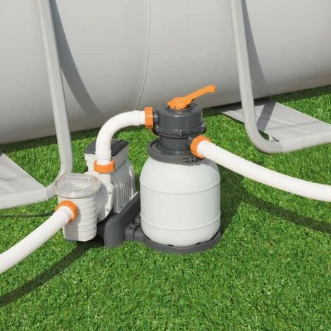 Description détaillée du produit: Filtre à sable Bestway pour piscines hors-sol Filtrage et propreté eau de piscine Pompe avec une prise DCR Pré filtre intégré Débit de la pompe: 5,678 m3/h Puissance: 230 W Quantité de sable: 9 kg Conception du flasque bride à 360° possible Vanne à 6 positions Manomètre facile à lire Crépine incluse Produit pré monté Convient pour les piscines jusqu’à 42,3 m3 Raccords: 38 mm Sable ou balles filtrantes non fourni Recommandation: Utiliser du sable de silice n°20 granulométrie 0,45 à 0,85