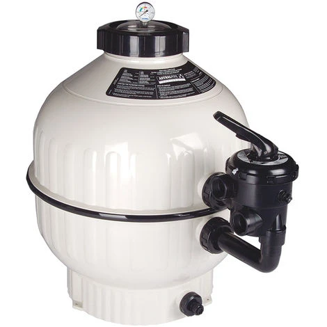 Le filtre à sable CANTABRIC latéral, de marque ASTRAL POOL est conçu en résine thermoplastique injectée. Les parties supérieures et inférieures du filtre sont unies par électro-soudage. Equipé d’un manomètre, purge d’eau manuelle. Sans vanne. Capacité de sable : 550 Kg. Débit de la pompe : 30 m³/h.