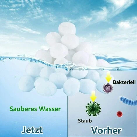 【Capacité de purification】—–Les boules filtrantes peuvent filtrer même les particules de saleté les plus fines de 1 micron, ainsi que la graisse, la saleté et la crasse dans l’eau, réduisant ainsi l’eau devient plus claire dans la piscine. grands réservoirs d’eau, etc. Plus léger, plus efficace, excellente filtration et respectueux de l’environnement honnêteté.