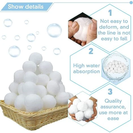 【Large application】: Filterballs est utilisé universellement dans divers systèmes de filtre à sable, ne bloque pas les systèmes de filtre à sable et convient également à l’eau salée. Peut filtrer non seulement pour les piscines, mais aussi pour les aquariums, les étangs, etc. L’application de la bille filtrante vous donne l’effet de qualité de l’eau propre et claire!