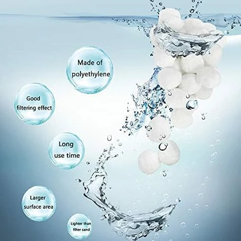 Matériau: Ils sont fabriqués à 100% en polyéthylène de haute qualité, ont une super capacité de filtrage, peuvent absorber efficacement diverses impuretés dans l’eau. Peut être utilisé dans n’importe quel système de filtre à sable commun, sûr et pratique.