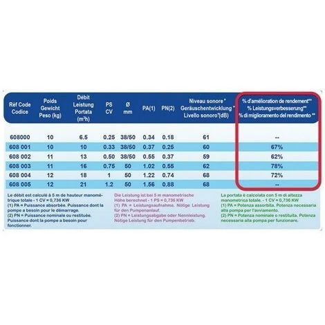 La gamme Eco Premium est un ensemble de pompes centrifuges auto-amorçantes avec pré-filtre incorporé sur tous les modèles de pompe. Elles sont très fiables et possèdent de très bonnes performances. De plus, cette pompe est d’un excellent rapport qualité/prix.