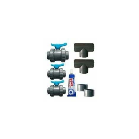 Le kit-pass ø 50 mm comprend : 3 vannes ø 50 mm, 2 tés ø 50 mm et un tube de colle. – – – –