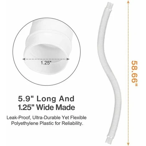 Le tuyau accessoire mesure 1,25 pouces de diamètre et 59 pouces de long.