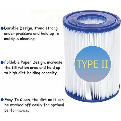Filtre de piscine type 2 : convient pour les purificateurs à cartouche de type II pour Bestway 58094,58148,58117, SPA, remplacement pour filtre de nettoyage de piscine.