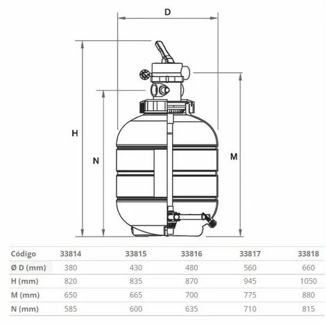 SUINGA Filtre De Piscine Millennium, Ø 480 Mm – Sorties 1½ », Vanne De Sélection Supérieure Incluse.