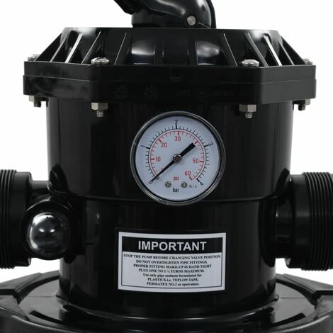 En vertu du sable comme milieu filtrant, ce filtre à sable de piscine est efficace pour filtrer et purifier l’eau de votre piscine. Il s’agit d’une option très économique et nécessitant peu d’entretien pour garder l’eau de votre piscine intacte. Fabriqué en polyéthylène haute densité, le filtre à sable est hautement durable. Ce filtre est conçu pour atteindre un débit de 12 m³ / h. La pression de service maximale est de 50 PSI. Pour démarrer l’opération, 100 kg de sable filtrant (non inclus) sont nécessaires. Le filtre est équipé d’une vanne multivoie à 6 positions : filtre (pour filtrer l’eau), lavage à contre-courant ((pour nettoyer le milieu filtrant), rinçage (pour rincer le système de filtration), hiver (pour l’hiver), recirculation (pour éviter le filtre de la piscine) et fermeture (pour arrêter tout écoulement d’eau au filtre). Ce filtre à sable convient parfaitement aux pompes de piscine de 1 CV. Remarque : Elle peut être raccordée avec des tuyaux de diamètre de 32 mm et de diamètre de 38 mm.